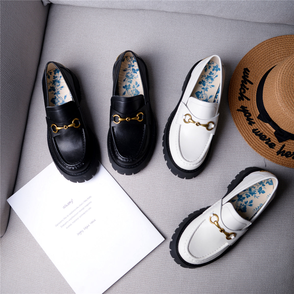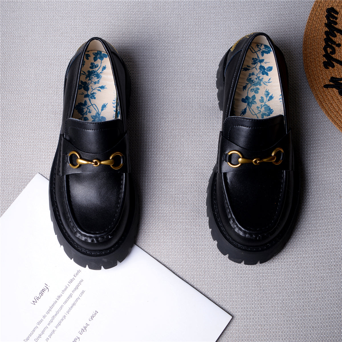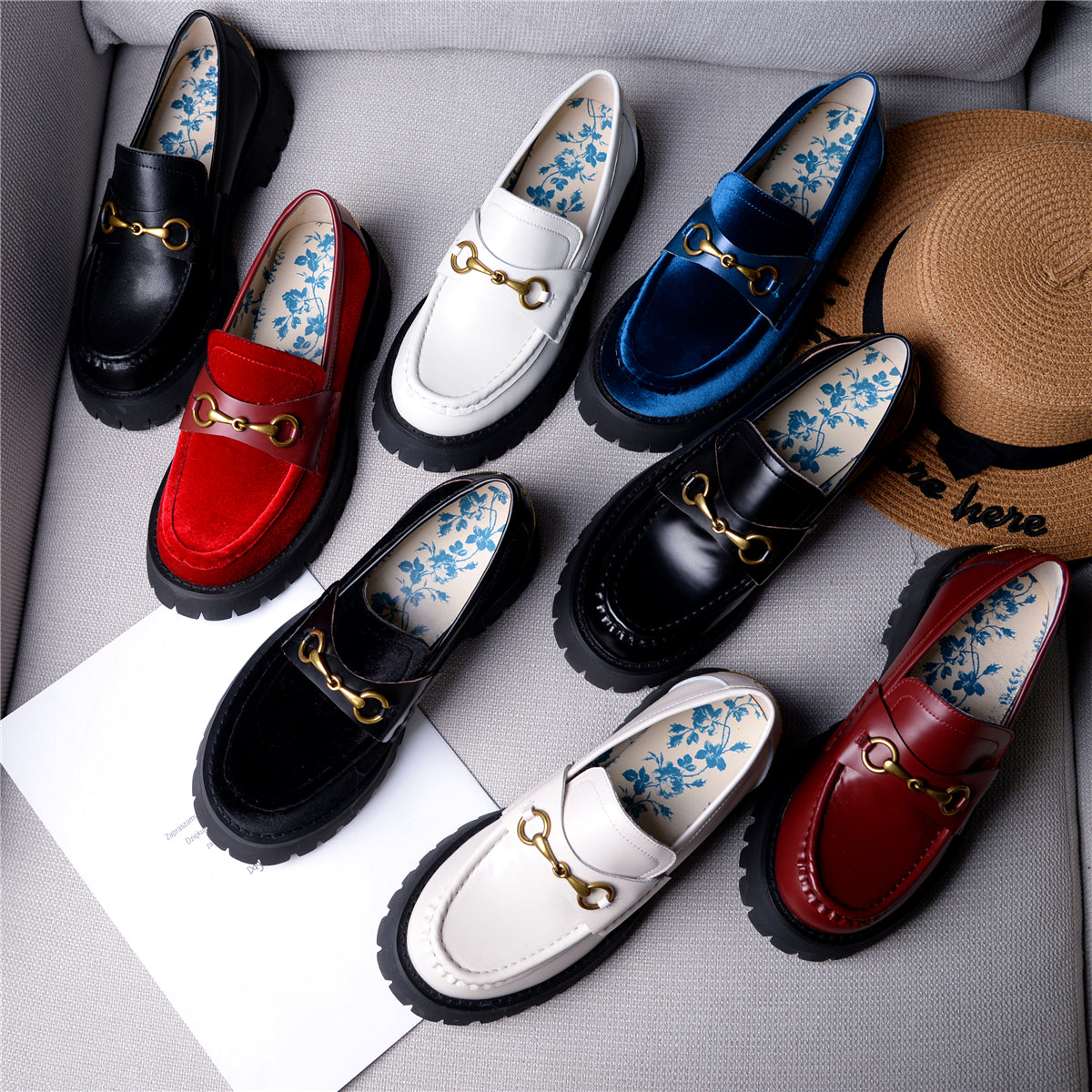 ●Heel Height:4cm,Chunky Mid Heels Platform Uniform Shoes Loafers