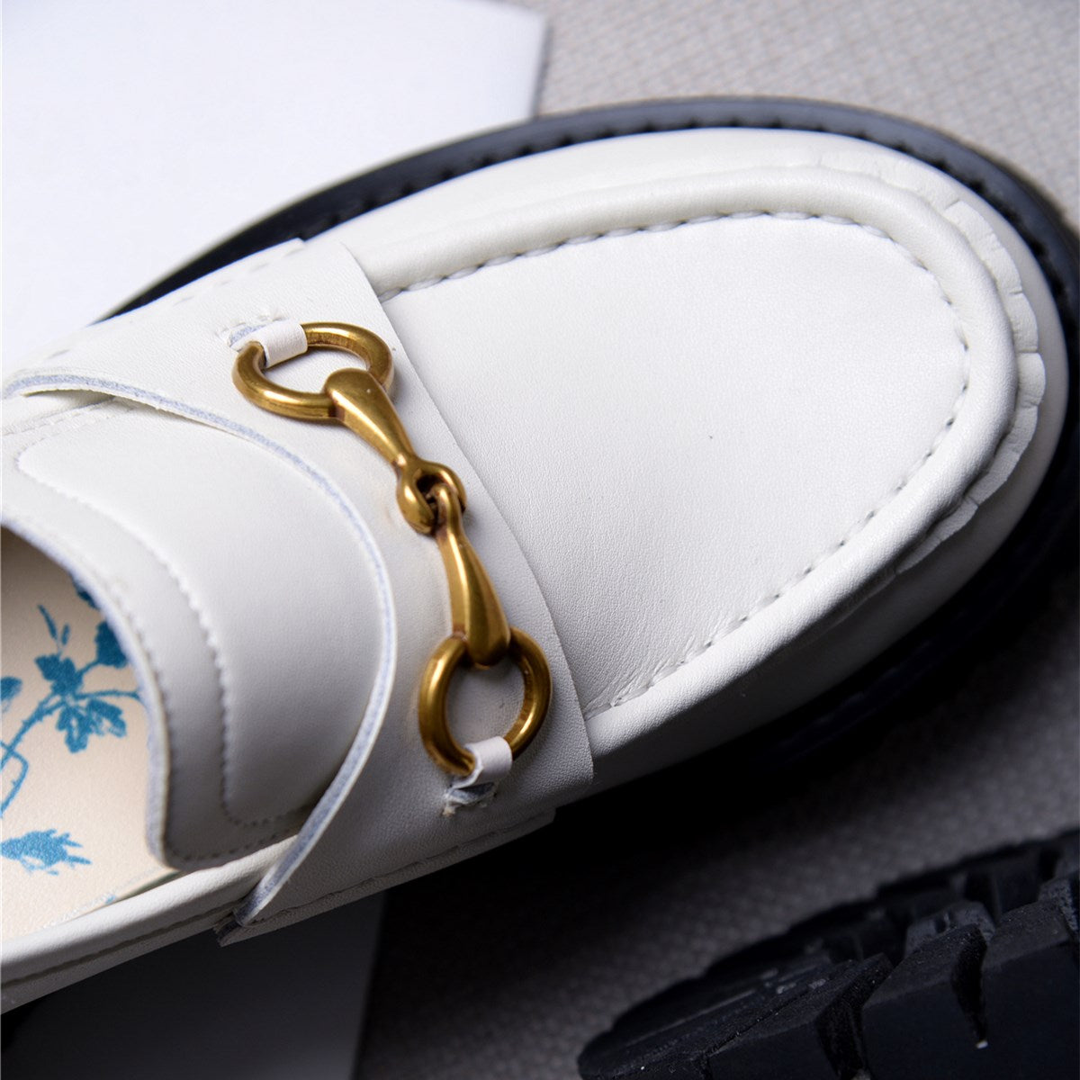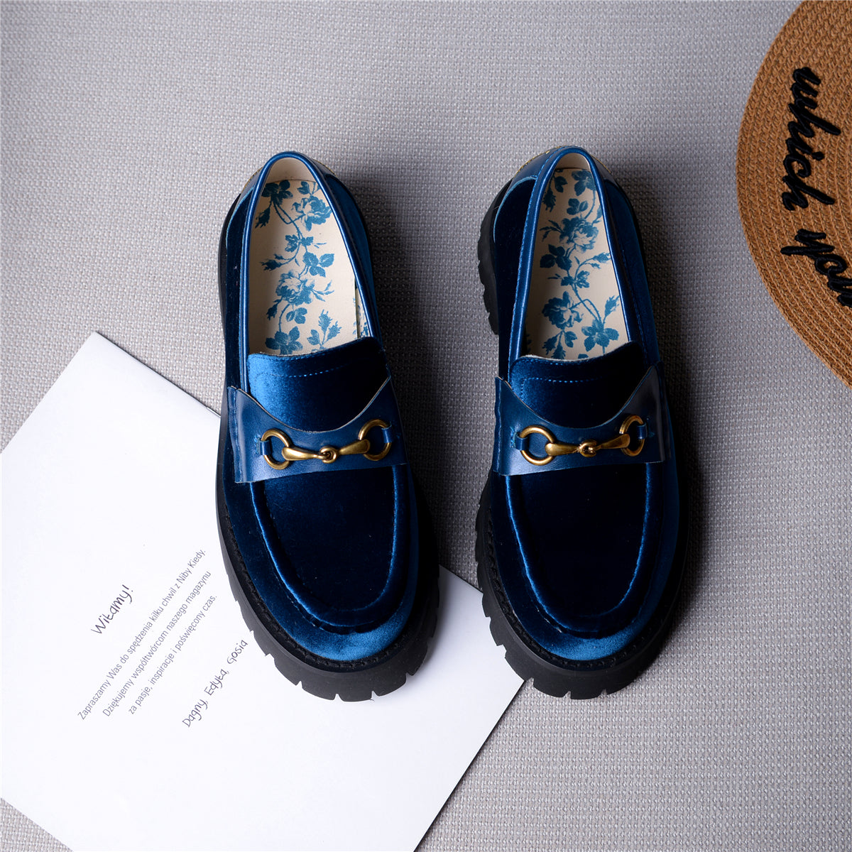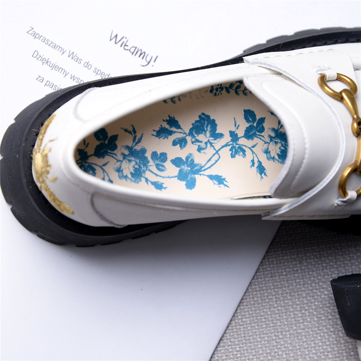 ●Heel Height:4cm,Chunky Mid Heels Platform Uniform Shoes Loafers
