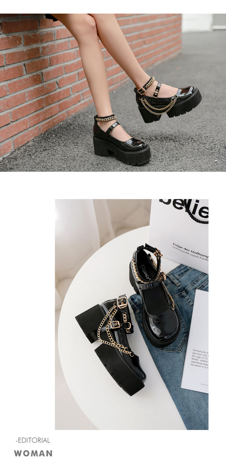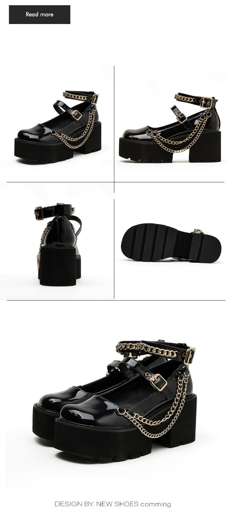 ●Style: Womens Mary Jane Goth Pumps Gothic Chunky High Heels